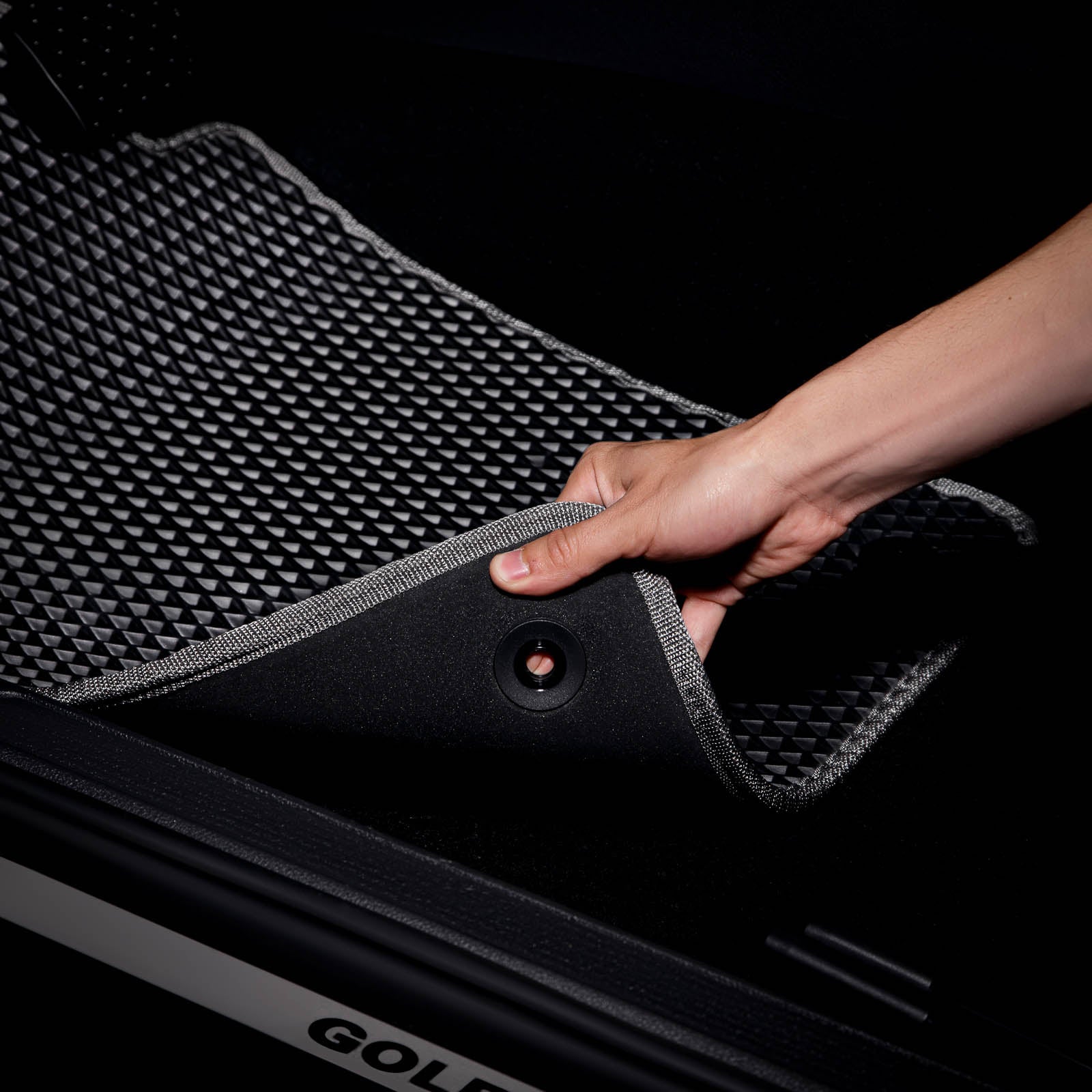 Thanks to the clever cell structure of our Prime EVA car floor mats, water that reaches the surface is evenly distributed across the cells and securely trapped. Even with movements in the car, the water stays in place without spilling over. This intelligent design prevents liquids from spilling over the edge of the mats.